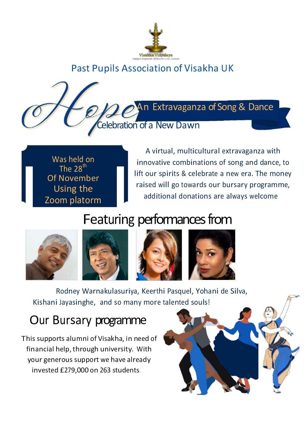 Reflecting on HOPE, hosted by the Past Pupils Association of Visakha Vidyalaya (UK) on the 28th of Nov. 2021, We would like to give some feedback purely to show gratitude to the organisers for an exemplary production……..